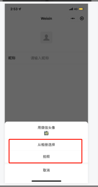 只想用微信头像,禁止用户上传拍照要怎么做?