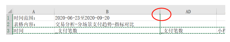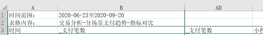 小程序-统计-交易分析-分场景支付趋势,导出来的数据有2个"支付笔数"字段。
