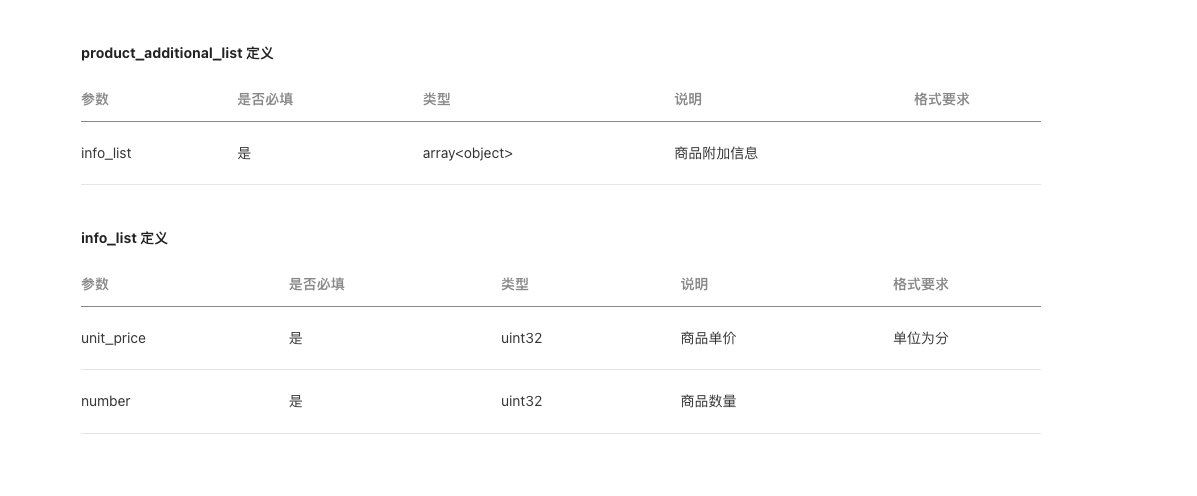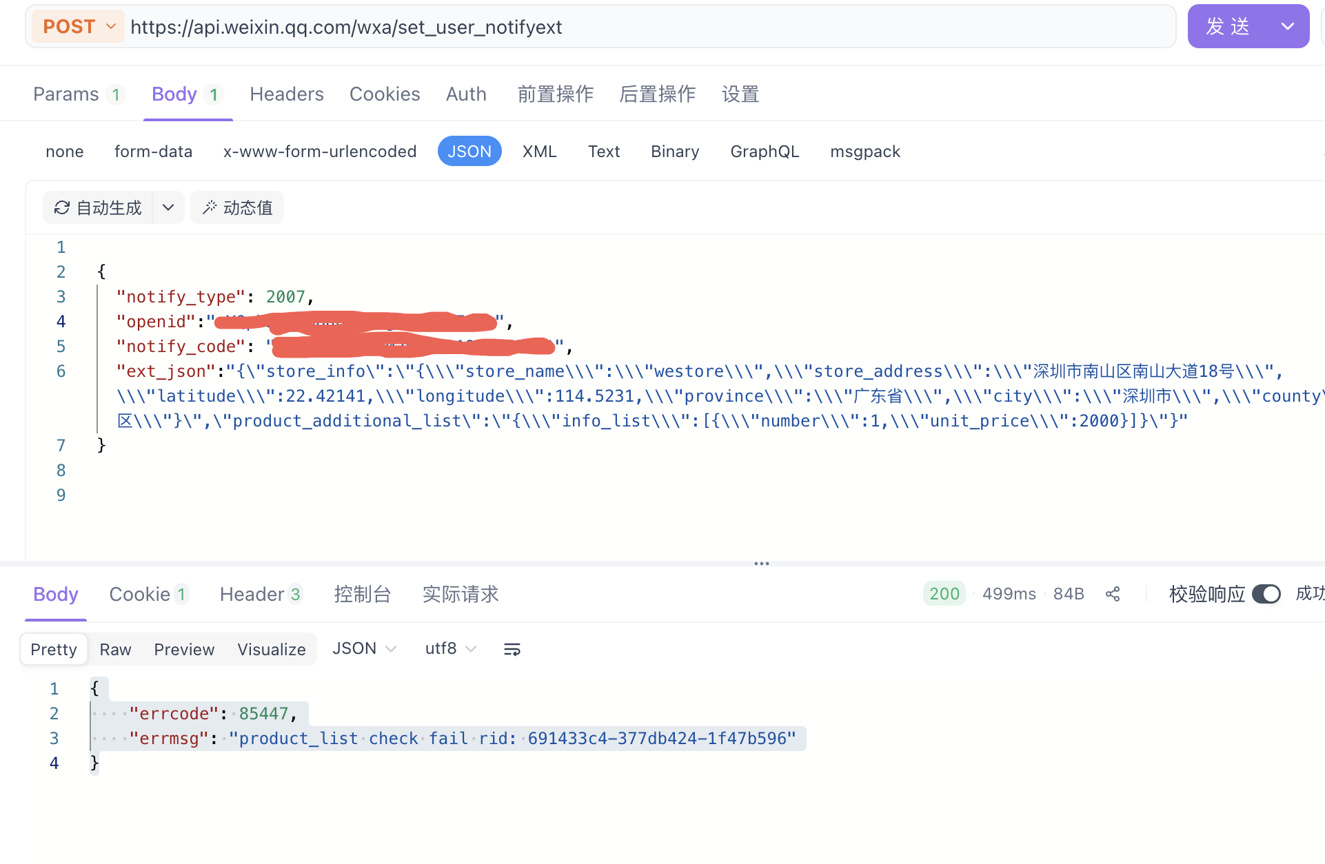 然后调用set_user_notifyext一直失败,按照文档描述product_additional_list中就两个字段