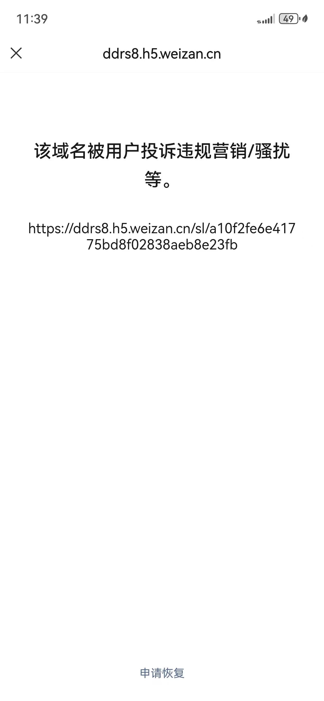 点击“申请恢复”,申请人可以正常观看,对于别的没有点击申请的用户还是不能观看,这个申请只针对个人,不针对这个网址。