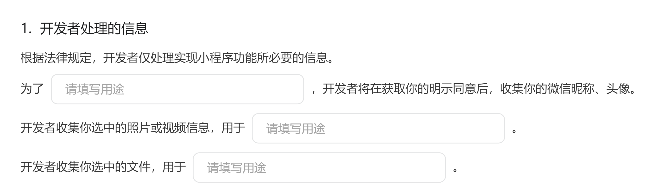 可参考小程序隐私保护指引填写说明详情:https://developers.weixin.qq.com/community/develop/doc/0004603f1ecf301870fcb50ae56801
