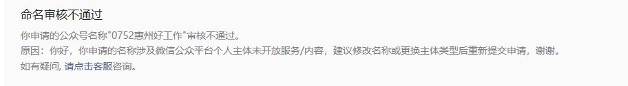 你好,目前暂不支持个人主体申请找工作类的昵称,建议修改昵称。