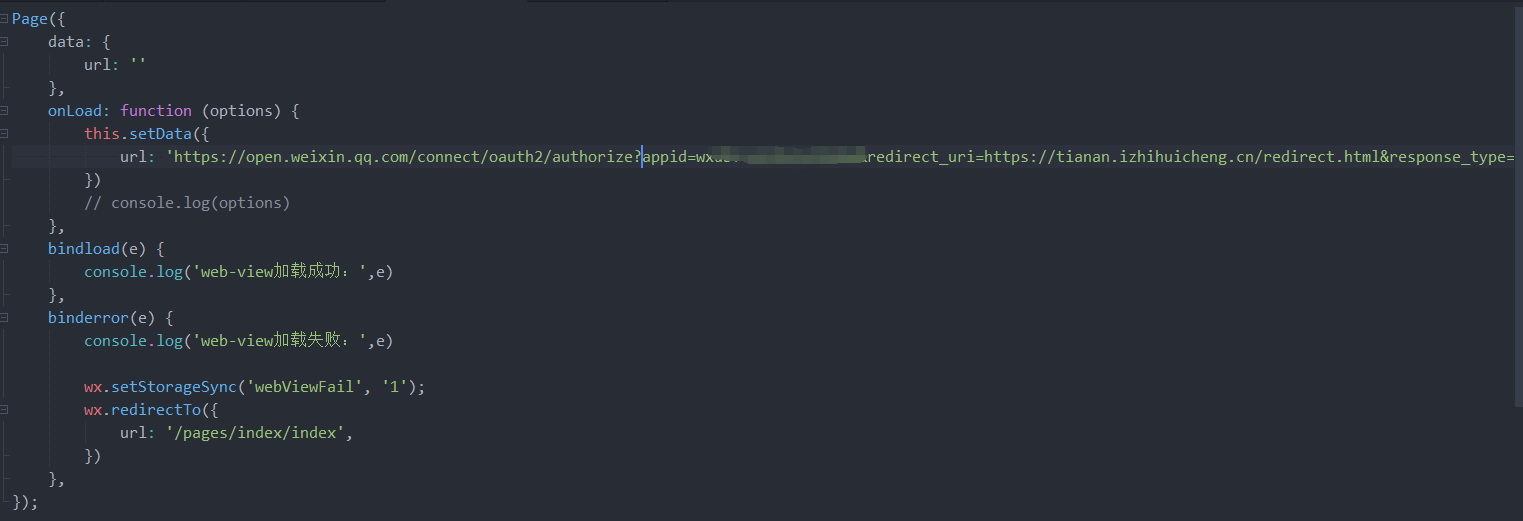 我的web-view嵌入的是一个微信OAuth2.0授权登录网页,授权成功后重定向的地址为:https://tianan.izhihuicheng.cn/redirect.html?code=xxxxx&state=11,该域名已配置在小程序后台合法域名里,目前出现白屏的客户都是鸿蒙系统的,其它系统用户都使用正常。