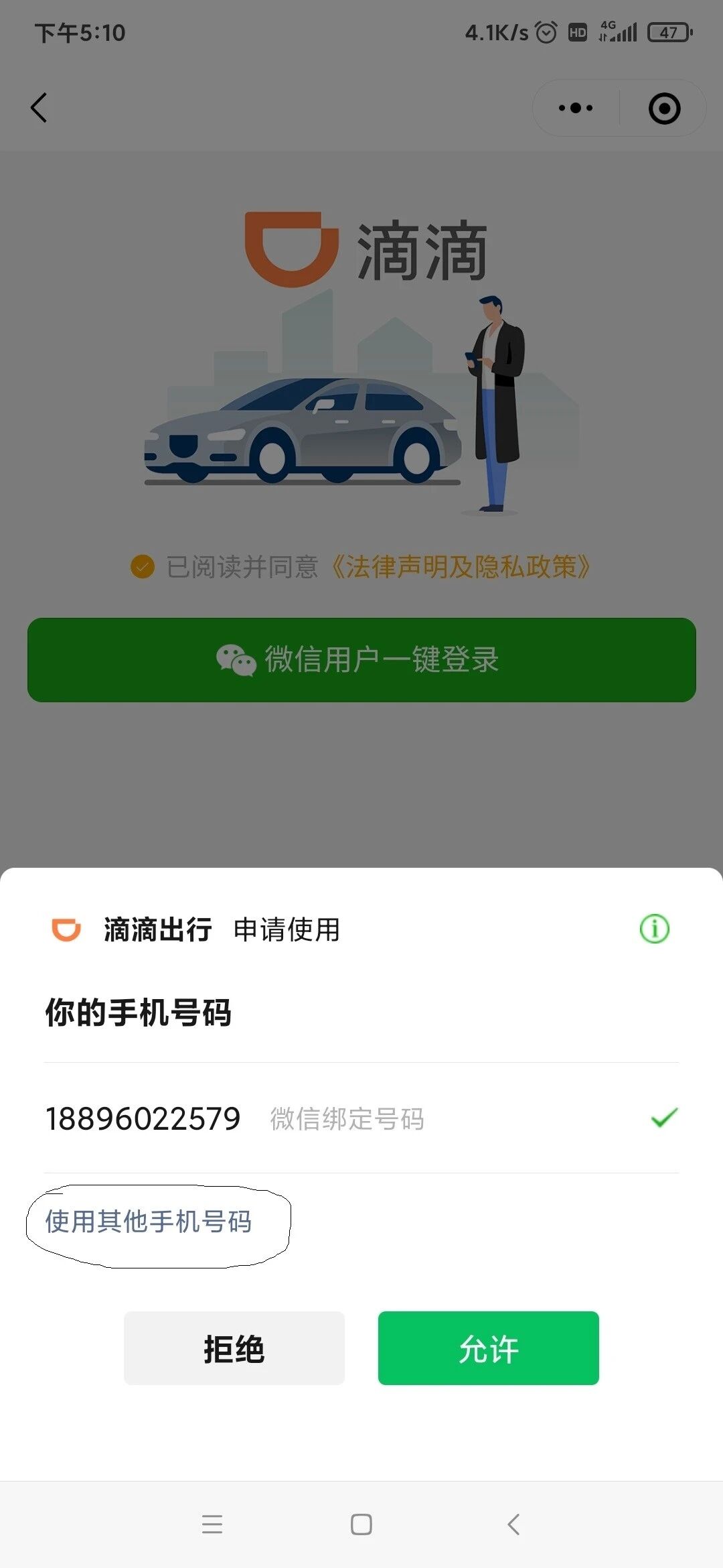 用户A微信绑定的手机号码是258,但是授权拉取的是以前的旧手机号码097,且没有在使用,只能用“使用其他手机号码”