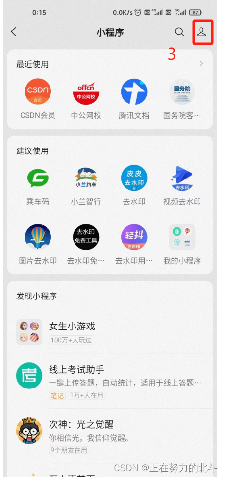 4.搜索小程序,重新打开小程序