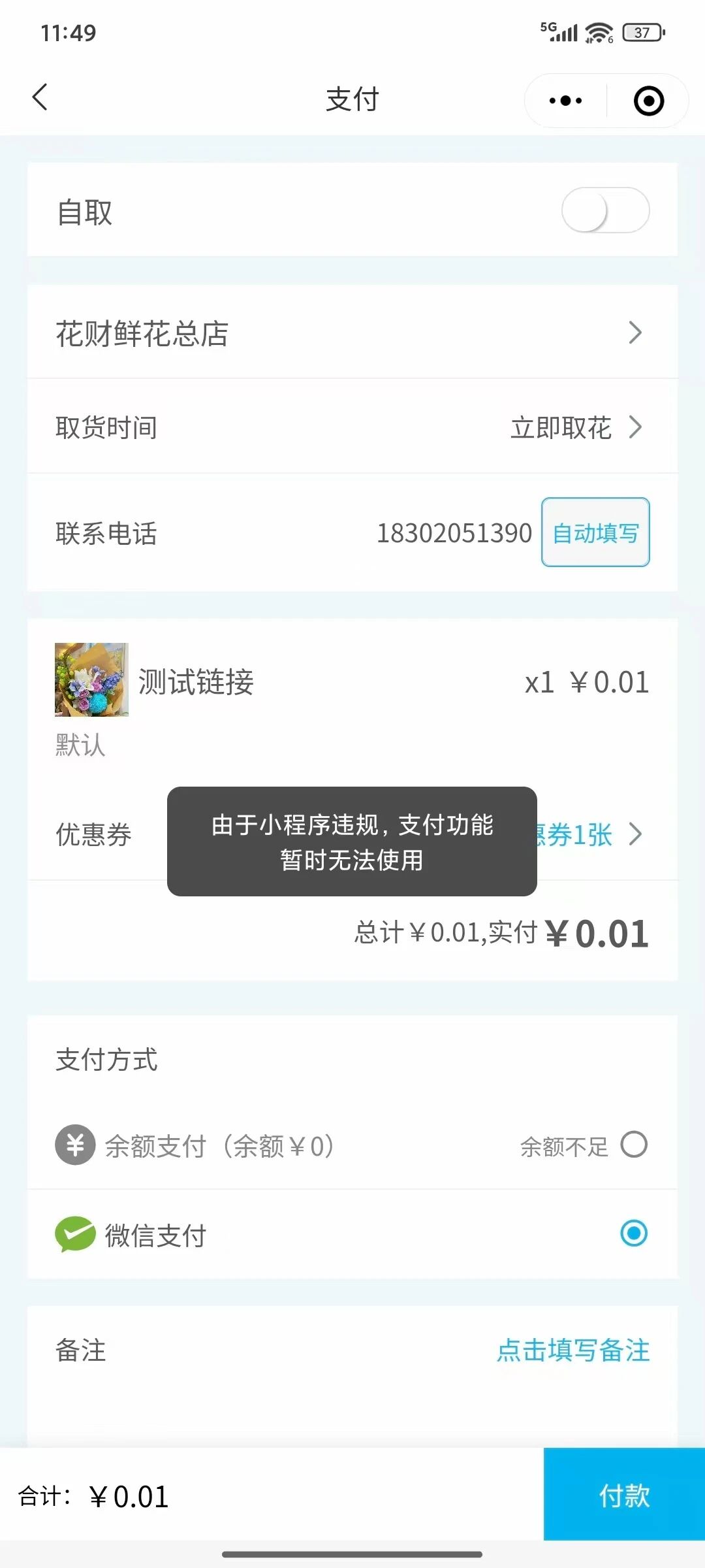 我的小程序在开发工具中,可以调取支付,然后扫码完成之后走完剩下的流程,但是在手机上就不行,提示“由于小程序违规,支付功能暂时无法使用”