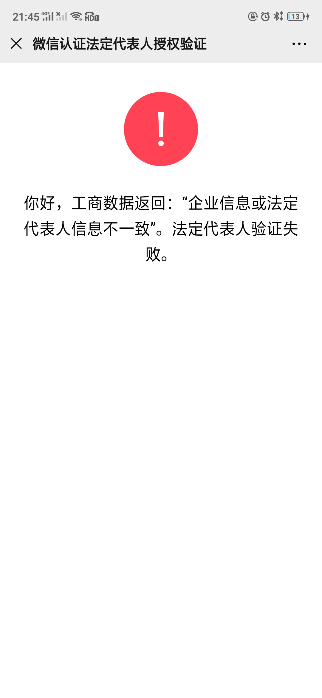 进行公众号认证,法人微信扫码一直提示企业信息不存在
