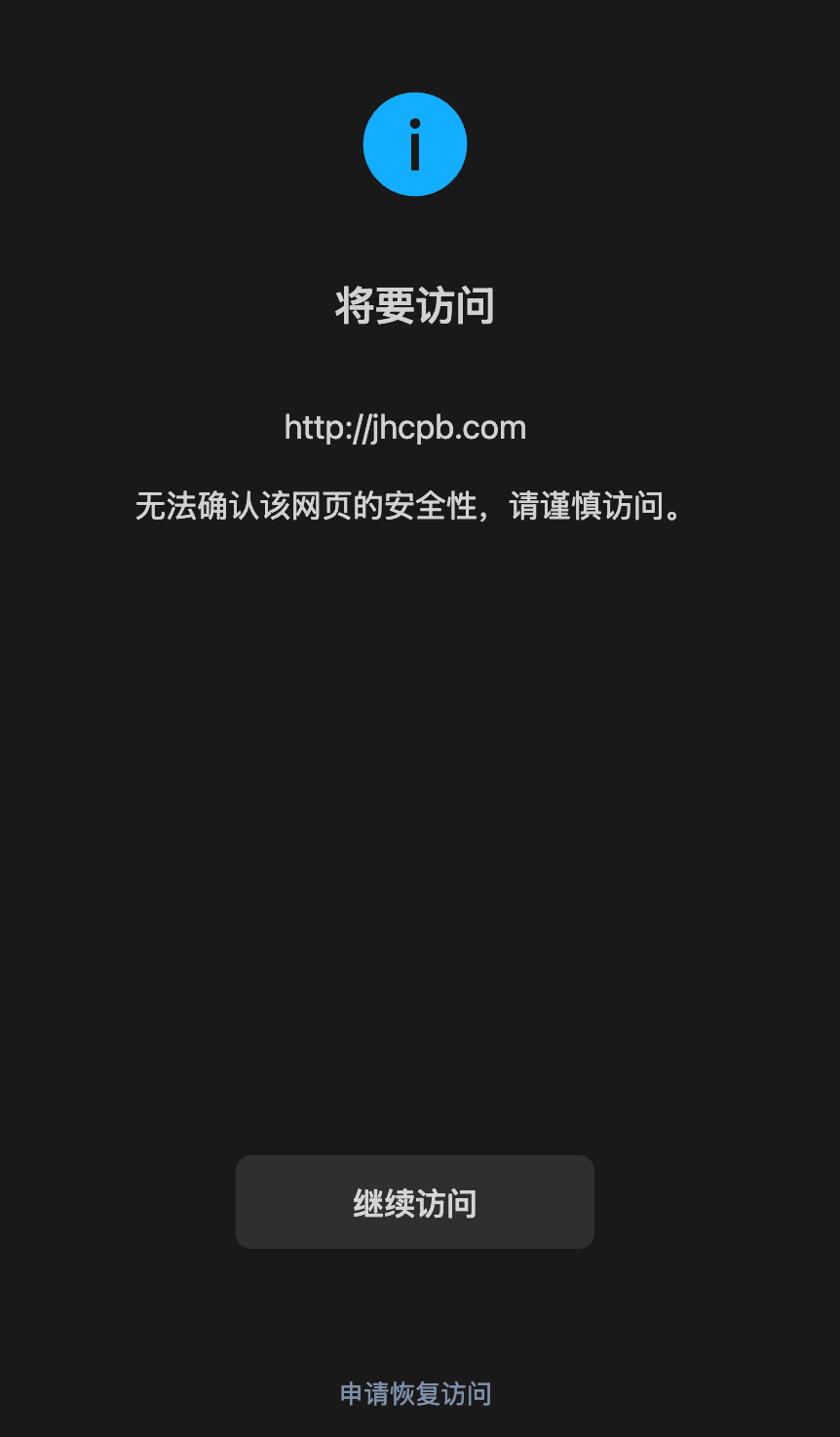 http://www.jhcpb.com/,域名并未违规,但是在微信内被拦截,无法直接访问,需要能恢复直接访问
