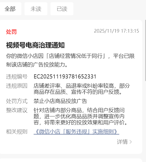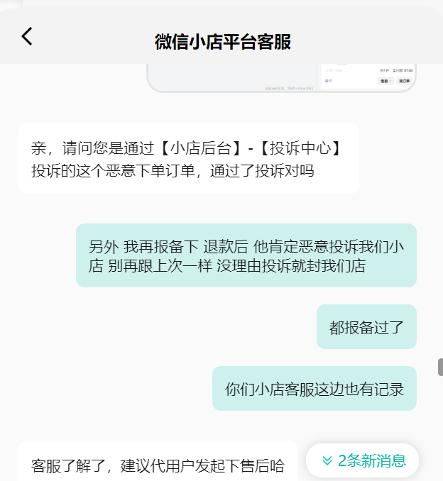 参考规则:《微信小店「投诉中心」使用指南》规则链接:https://store.weixin.qq.com/chengzhang/webdoc/wiki/8340/8c3891ef2d7df89b/growth_center_manual_for_store