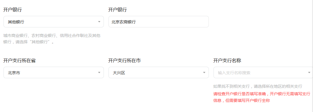 绑定北京农商银行的账号时,提示找不到开户支行名称。