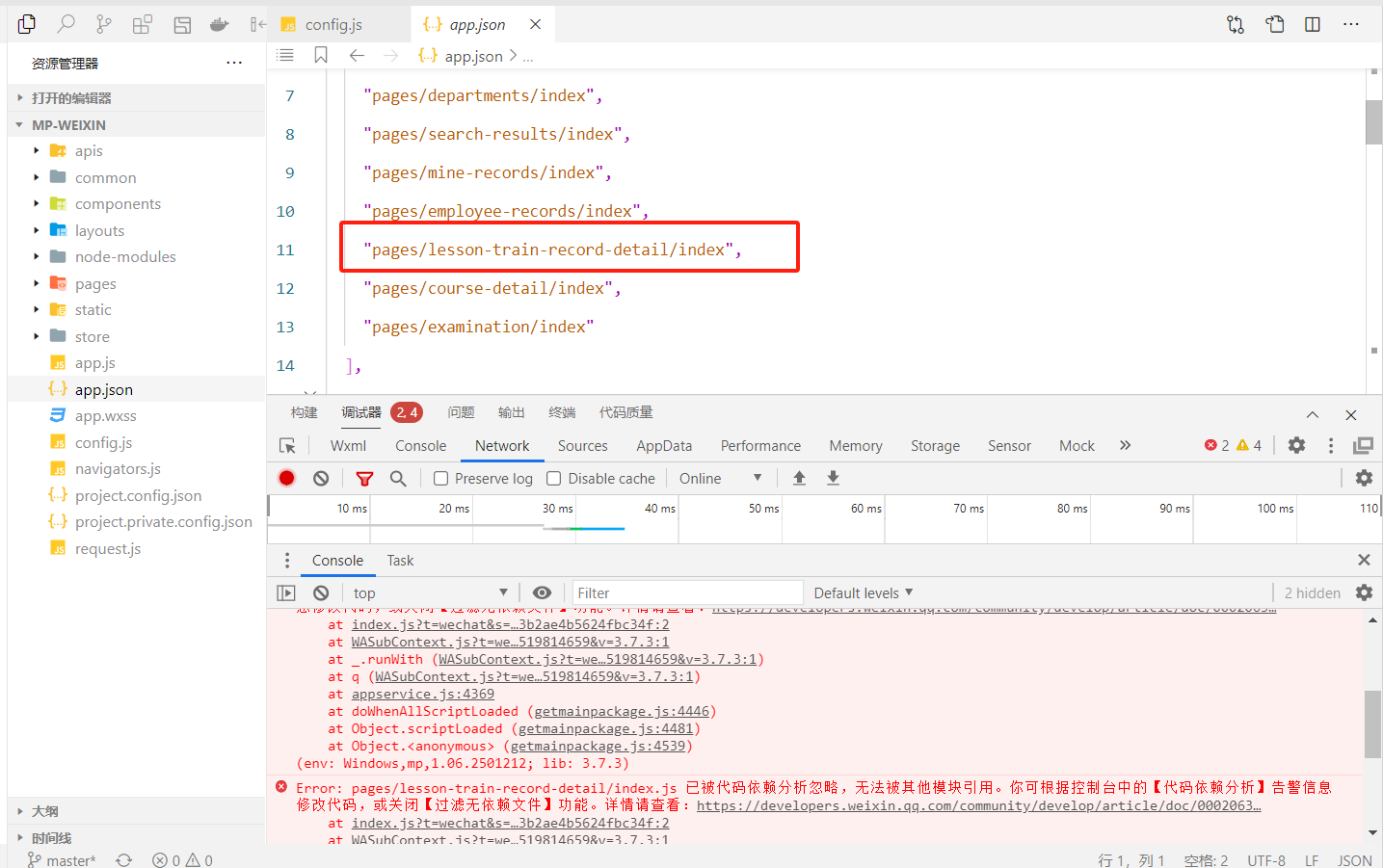 在app.json中配置了该页面,但被代码依赖分析忽略了。如果是工具bug请尽快修复,如果是代码问题请指出。