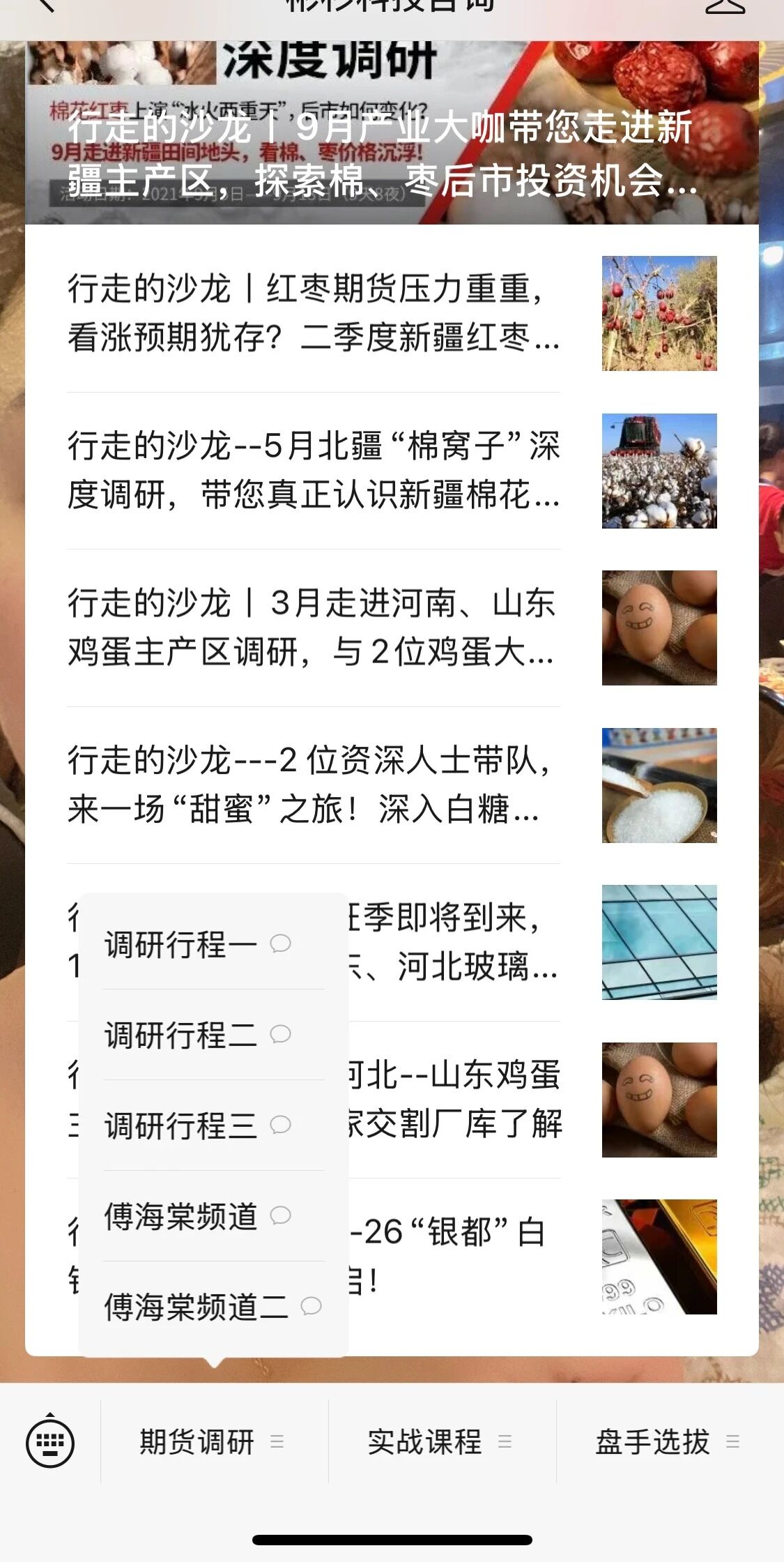 像图片这类公众号,主菜单(期货调研)点击后一排子菜单,例如点(调研一)就会发送(调研一)的所有内容,用户就可以很直观的看到所有(调研一)的内容,可以选读。记住不是跳转,是发送,因为我用页面模版做出来是跳转,没这个好。哪位大神请指教一下,感谢🙏