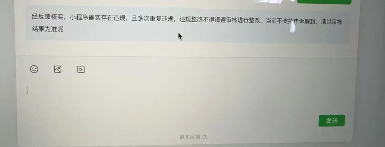你好,按照指引联系客服申诉,客服确说违规整改不得规避审核进行整改。但是我们按照要求全面整改完毕,小程序也已通过代码审核并且发布上线,但客服确说不支持申诉?