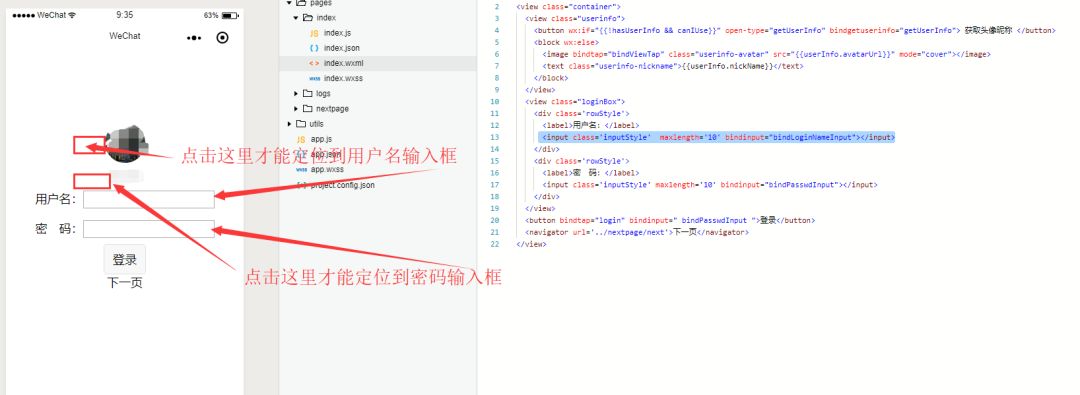 <view class="intro">鼠标点击输入框输入不会有反应。实际聚焦在输入框左上方。