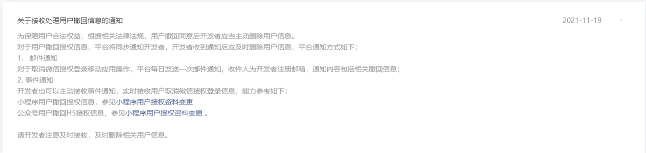 昨天收到关于接收处理用户撤回信息的通知提醒