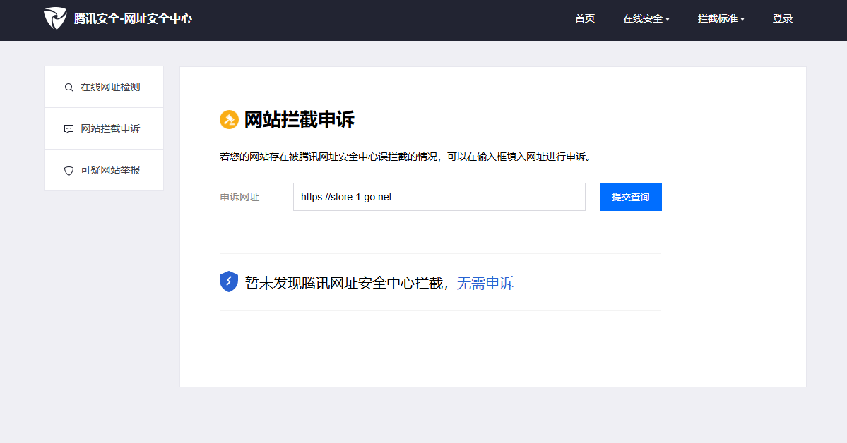 你好,经审核,域名1-go.net下的链接【https://store.1-go.net/】的内容存在违反《微信外部链接内容管理规范》的第1条“诱导分享类内容”,请对相关内容修改后进行申诉;申诉方式可点击停止访问页底部入口进行操作,我们会在三个工作日处理,请耐心等待。详细规则请参考《微信外部链接内容管理规范》http://weixin.qq.com/cgi-bin/readtemplate?t=weixin_external_links_content_management_specification