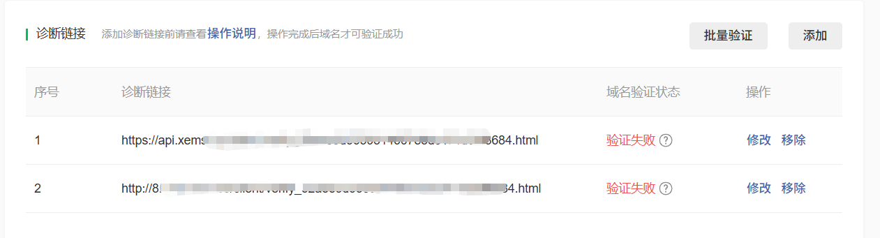 商家转账功能-安全医生-绑定诊断链接一直失败,配置的云服务的白名单,通过域名和ip都是可以正常访问校验文件
