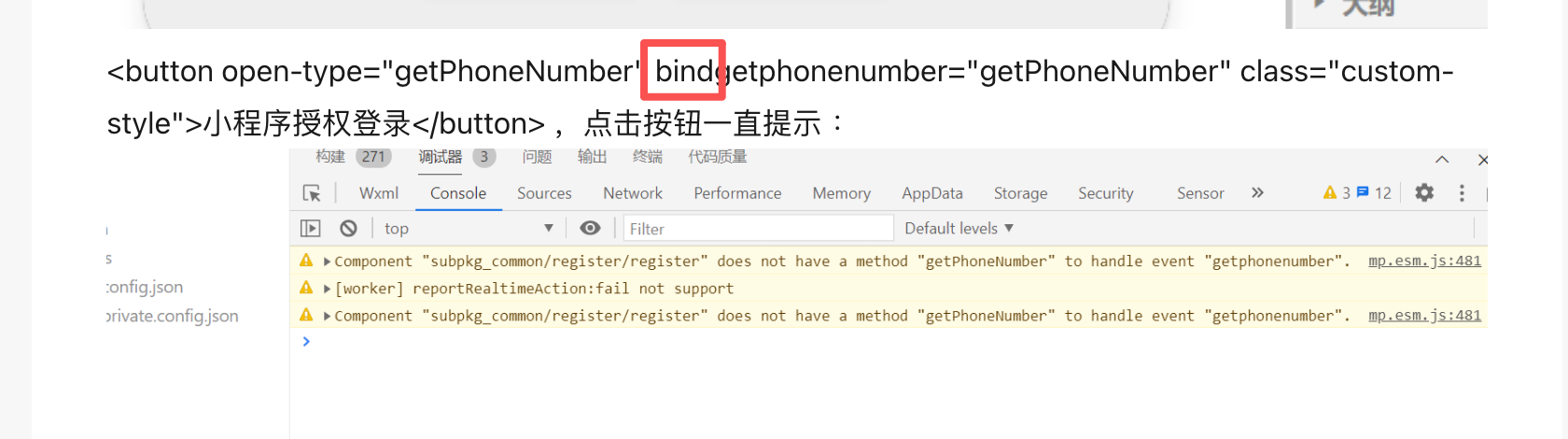 <button open-type="getPhoneNumber" bindgetphonenumber="getPhoneNumber" class="custom-style">小程序授权登录</button> ,点击按钮一直提示 :