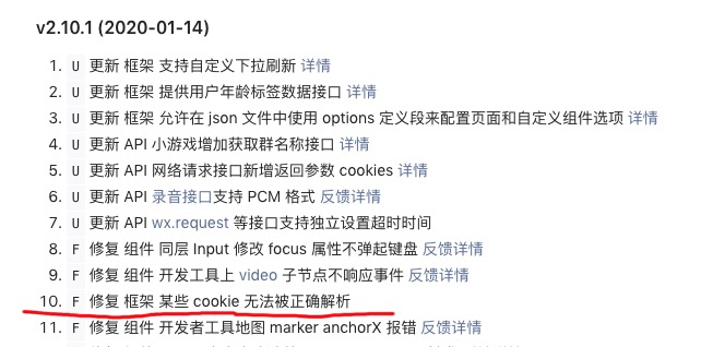 根据这个更新文档,我理解2.10.0版本的cookie解析是有问题的,那这种情况下为什么一直都用2.10.0版本的sdk进行审核呢?我这边一直审核不通过!全是header中没有set-cookie回来,但是后端已经确认返回了。