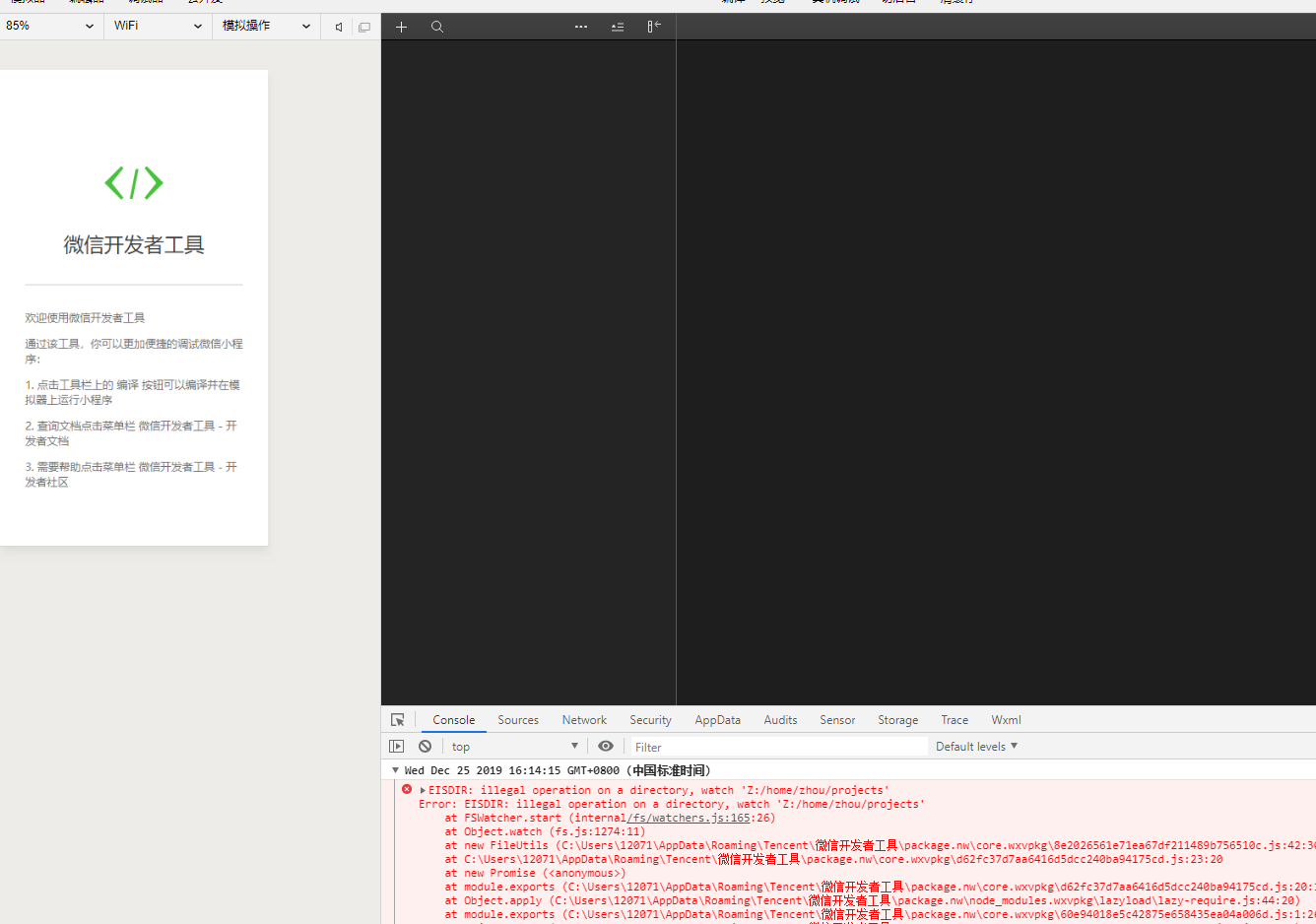 WSL2下不能正常调试,将项目文件拷贝到windows下目录可以正常运行。