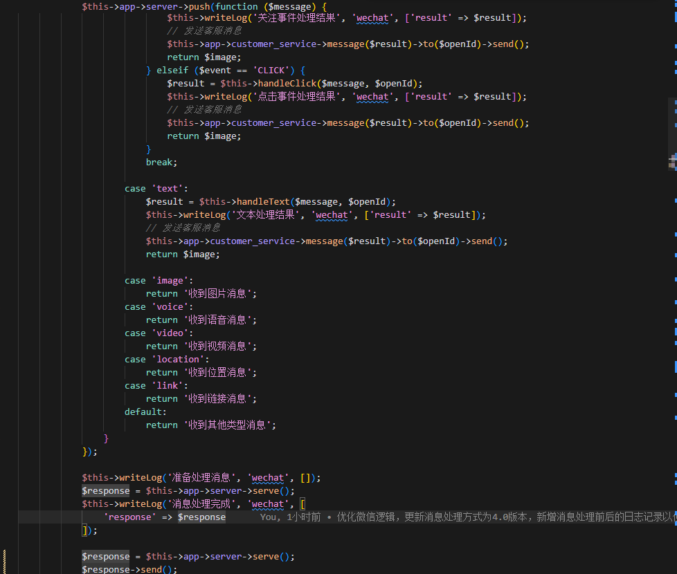 早上我把公众号 服务器地址切换到一个新地址 代码也迁移了 微信token 校验也成功了 但是 公众号出现 该公众号提供的服务出现问题,请稍后再试! 下面是代码相关片段 所有配置核对了 都是对的 但是不知道为啥就报这样的错