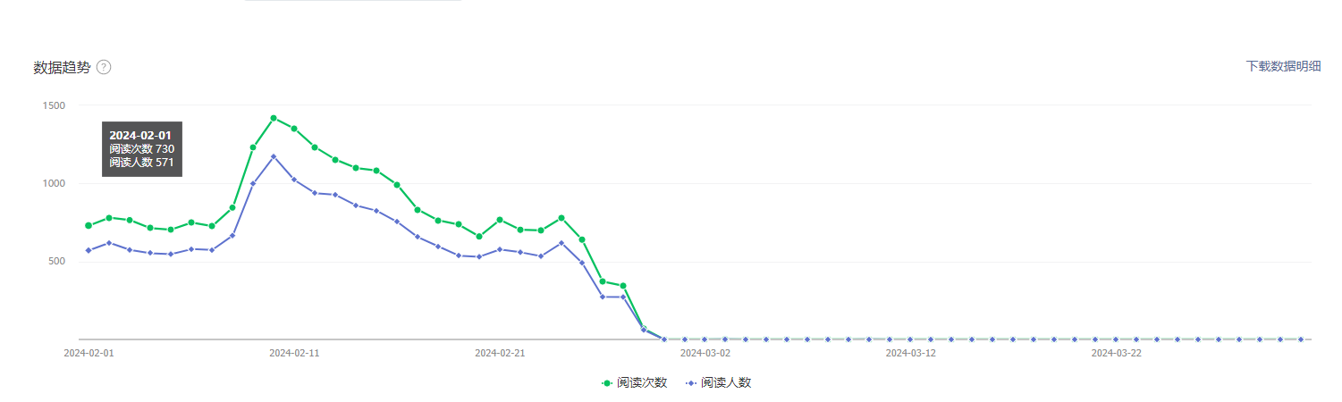 老师你好,我的公众号发布的文章从2024年2月底开始阅读量陡然降低,从大几百上千的阅读量,到现在十几几十的,已经有半年时间了,大部分都是搜一搜的量几乎为降到了0,烦请老师给看一下,如果有什么问题的话麻烦给提示一下,我这立马更改!