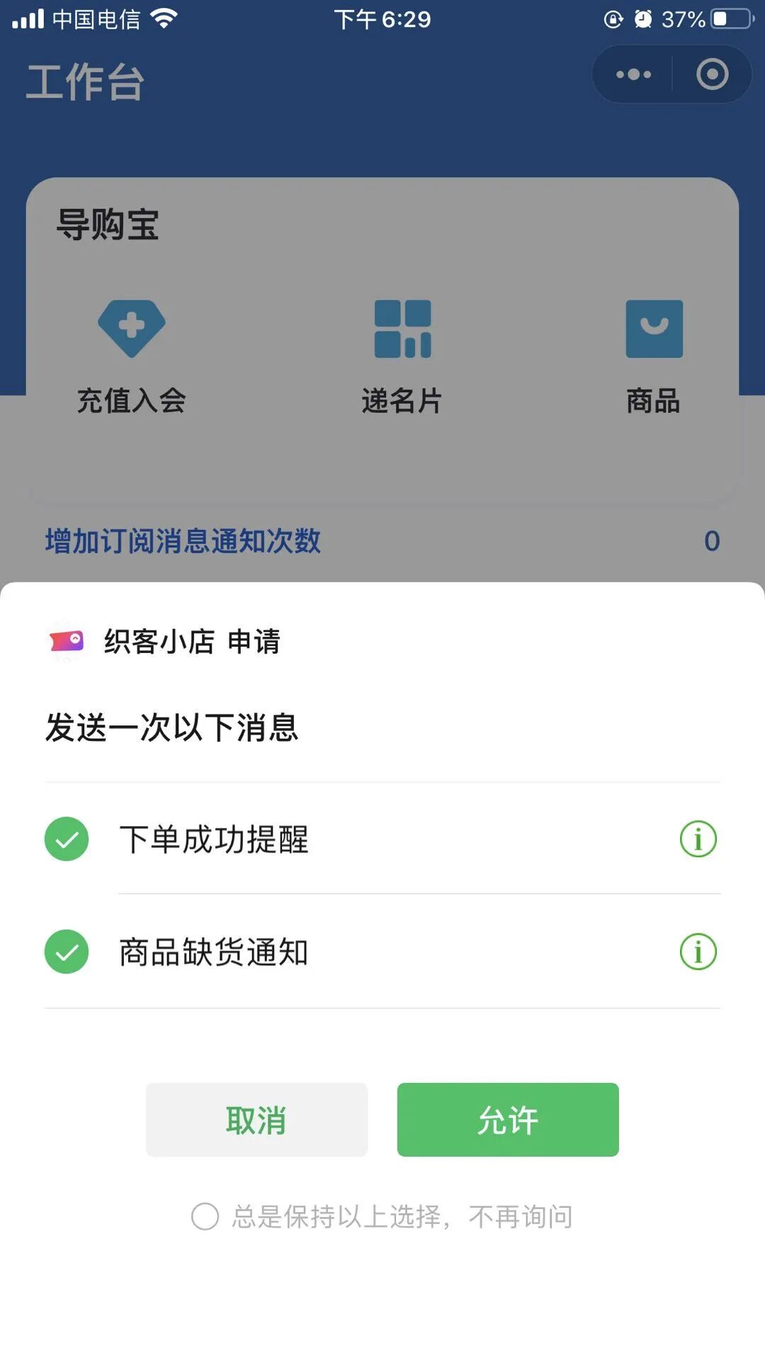 你进入设置看看是否已经授权过其中一个订阅消息了