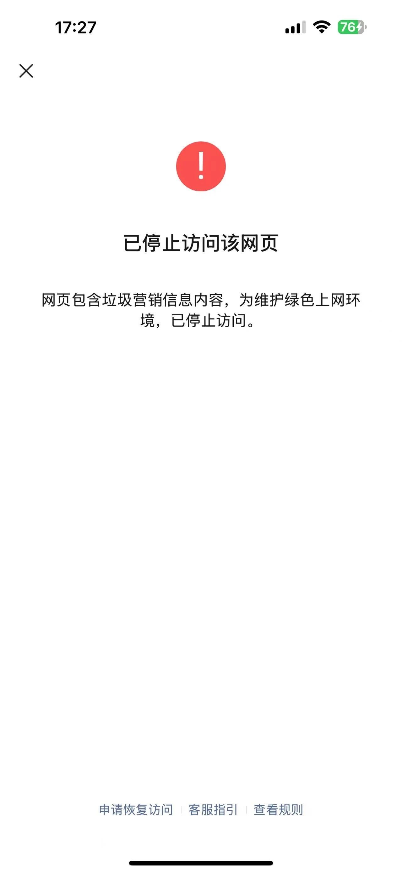 当访问页面时提示「已停止访问该网页,网页包含垃圾营销信息内容,为维护绿色上网环境,已停止访问」,但是我们这个就是一个简单的登录页面,不涉及到任何的营销内容啊!