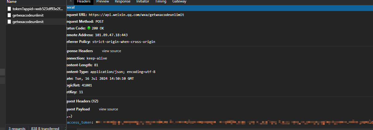 POST https://api.weixin.qq.com/wxa/getwxacodeunlimit?access_token=ACCESS_TOKEN这个接口,access_token参数传对的