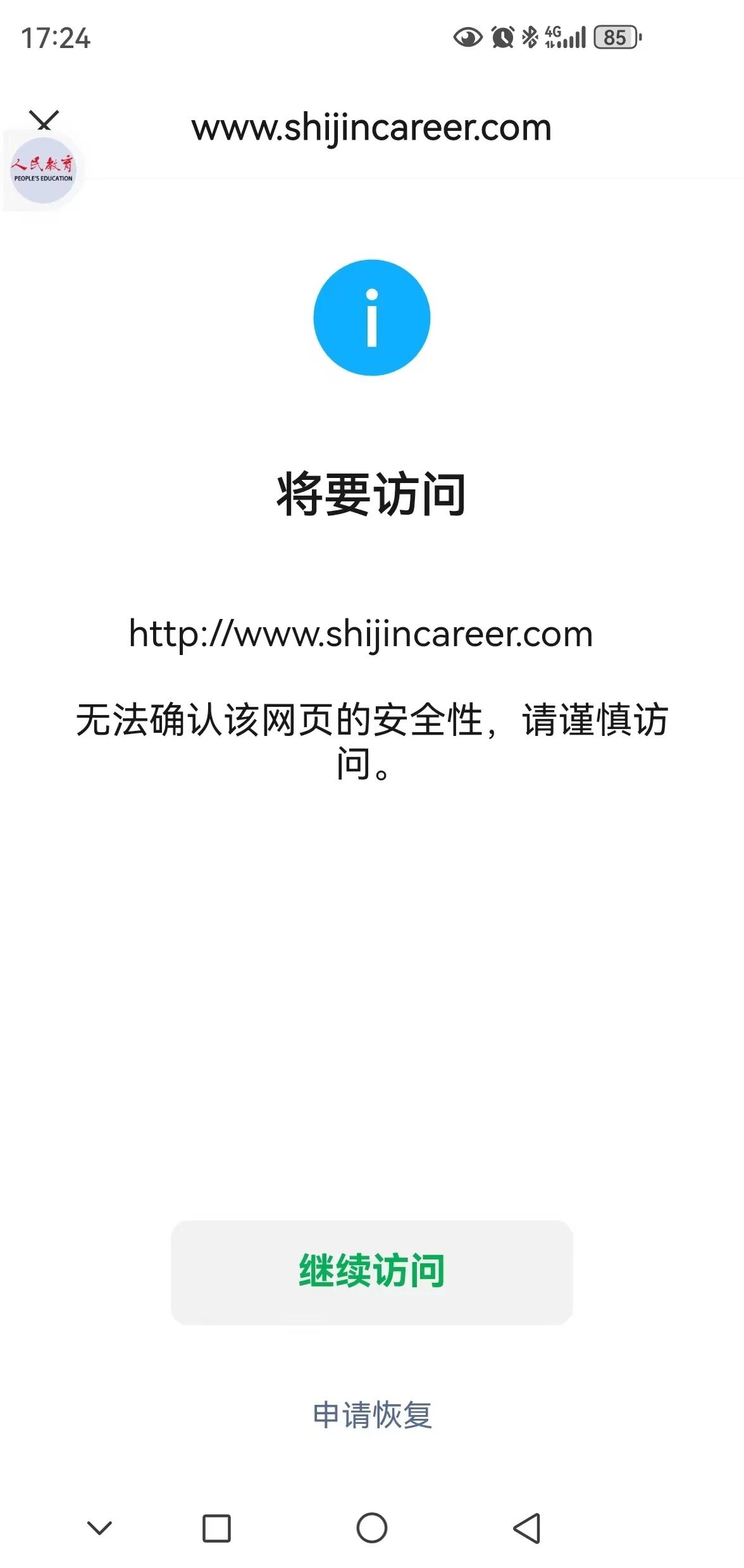 您好,域名shijincareer.com在西部数码注册并通过Ucloud备案通过,浏览器访问正常,我是网站开发者,访问时间如图2025/3/5,电脑端,手机端都出现微信访问网站出现“无法确认该网页的安全性,请谨慎访问”,经检查网页里没有不安全的内容,请核实后帮忙解除拦截,谢谢!