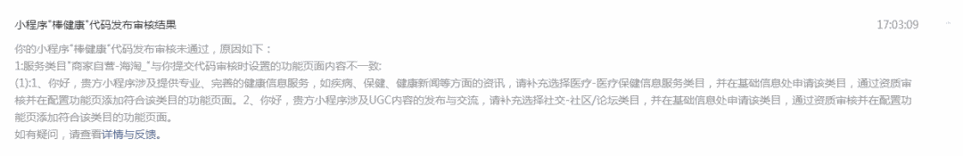 刚刚申请的小程序被驳回了,原因是缺少资质,具体驳回原因如图