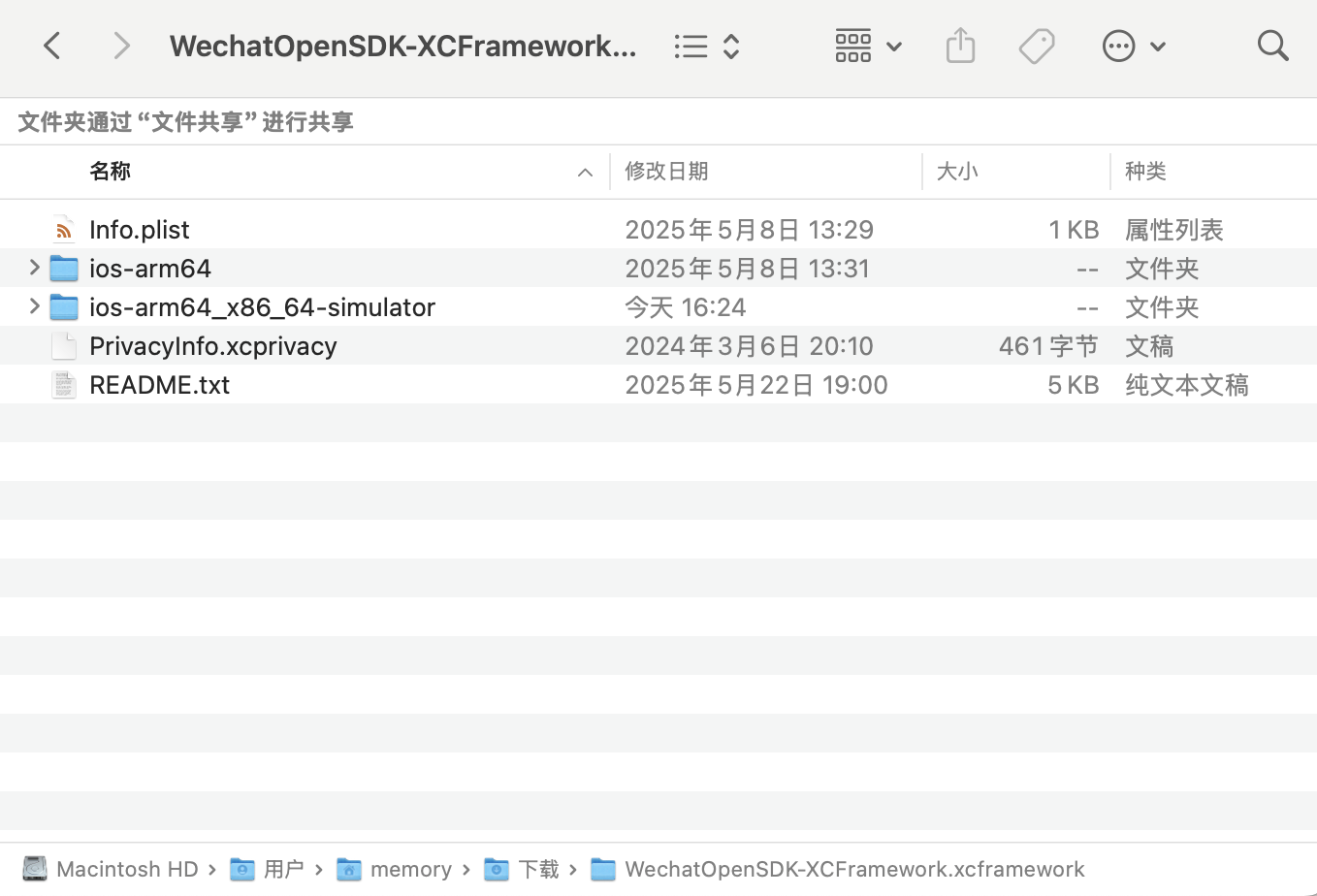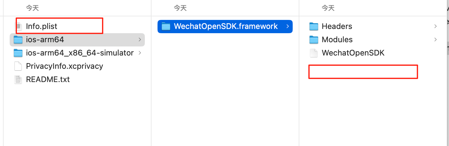 WechatOpenSDK.xcframework/├── Info.plist (注意:xcframework 本身可能有 Info.plist,但内部的 framework 可能没有)├── ios-arm64/│ └── WechatOpenSDK.framework/│ └── Info.plist (关键:这个路径下的 Info.plist 必须存在)├── ios-arm64_x86_64-simulator/│ └── WechatOpenSDK.framework/│ └── Info.plist (关键:这个路径下的 Info.plist 必须存在)