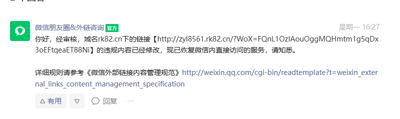 你好,经核实,该域名涉及非官方充值内容,我们无法核实其安全性,用户可在微信内继续访问,请知悉。
