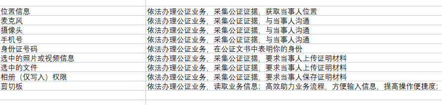 你好,建议针对不同的隐私接口分别详细描述下与其相关的具体用途后重新提交。