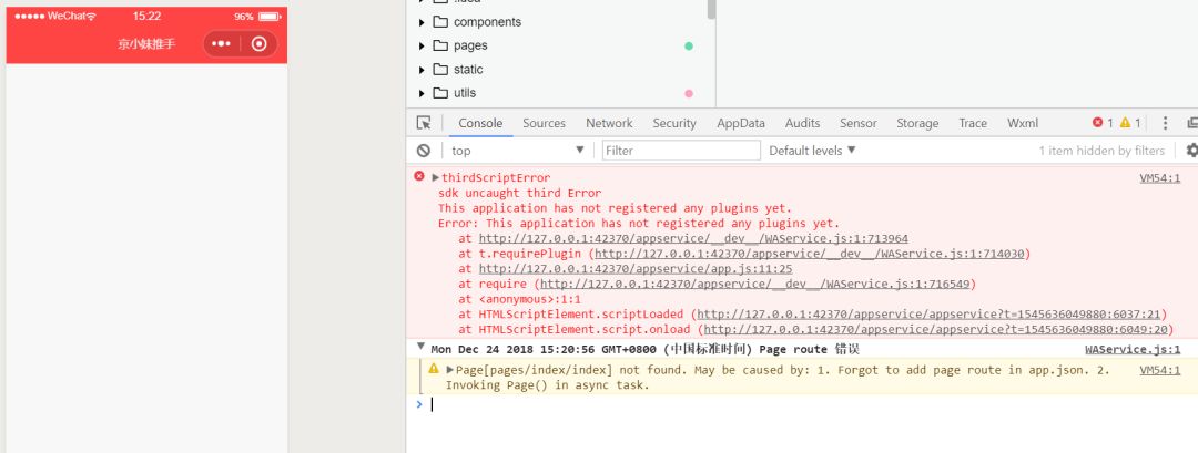 小程序引入了一个 插件"wx1edf489cb248852c" 但是没有引入 "wx1edf489cb248852c/0" 这种插件,不知道为什么一直报 Plugin "wx1edf489cb248852c/0" is not defined. 而且是偶发的,有的时候重启编辑器或重启电脑就好了,有的时候重启也不行。