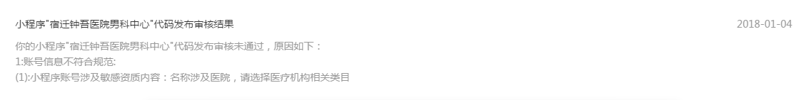 被驳回 但是小程序已经审核的类目就是 医疗-私立医疗机构