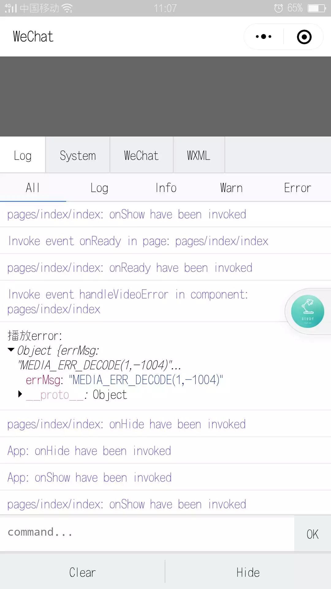 开发工具,iOs和大部分安卓机型上是可以正常播放的,但是部分安卓机型用户投诉无法播放,经过测试,在OPPO R9tm很快复现了该问题(在同一手机不是必然复现的)