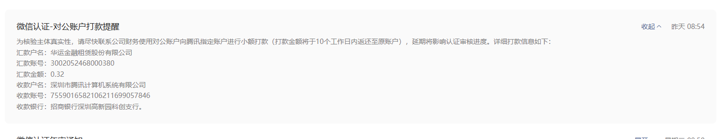 您好,我公司微信公众号年审需要小额汇款,但是登记的公司对公账号有问题,能换个账号转小额汇款吗?目前已完成微信名称认证、微信资质认证,对公账户打款财务发现原账号出现问题,想更换账号进行小额汇款操作。