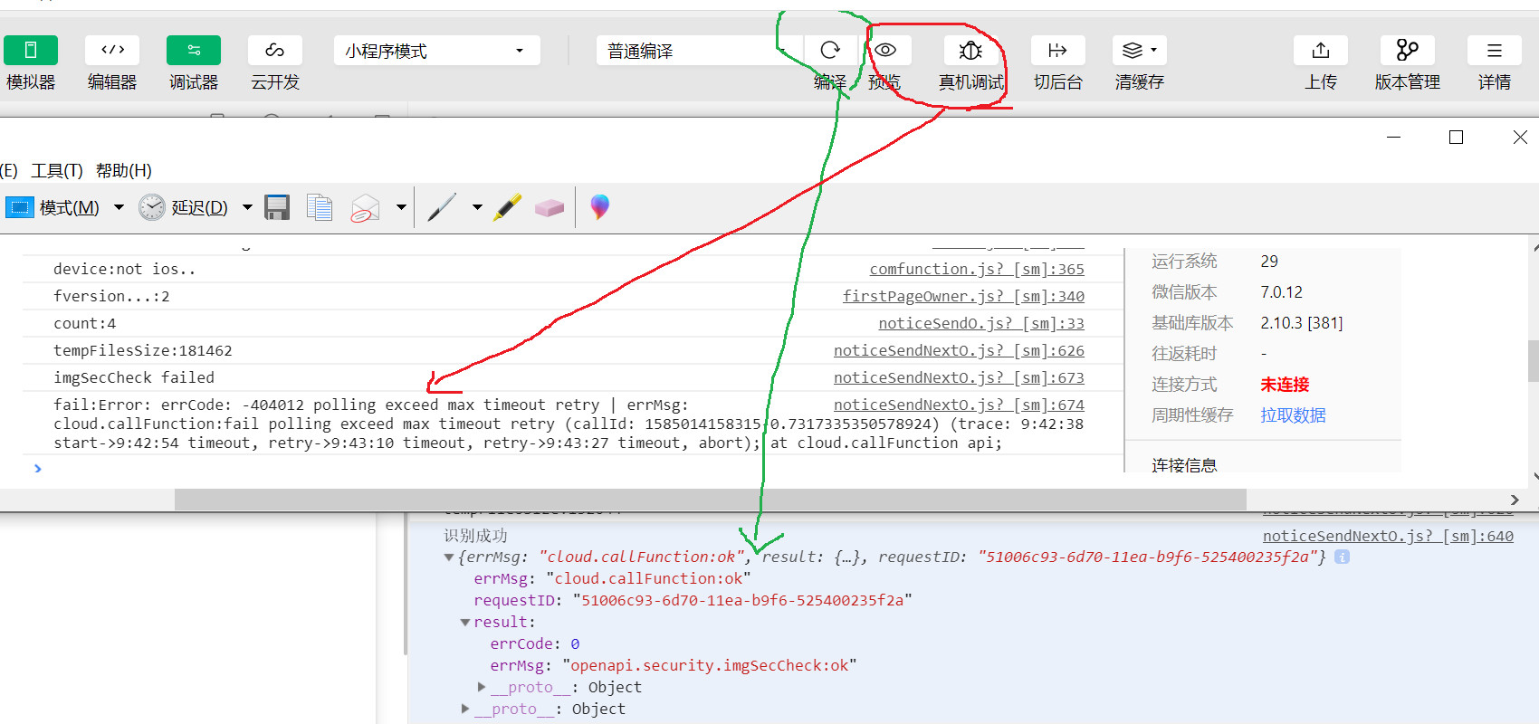 security.imgSecCheck在开发者工具编译成功,但是在预览及真机调试,多次都失败。请问怎么回事?