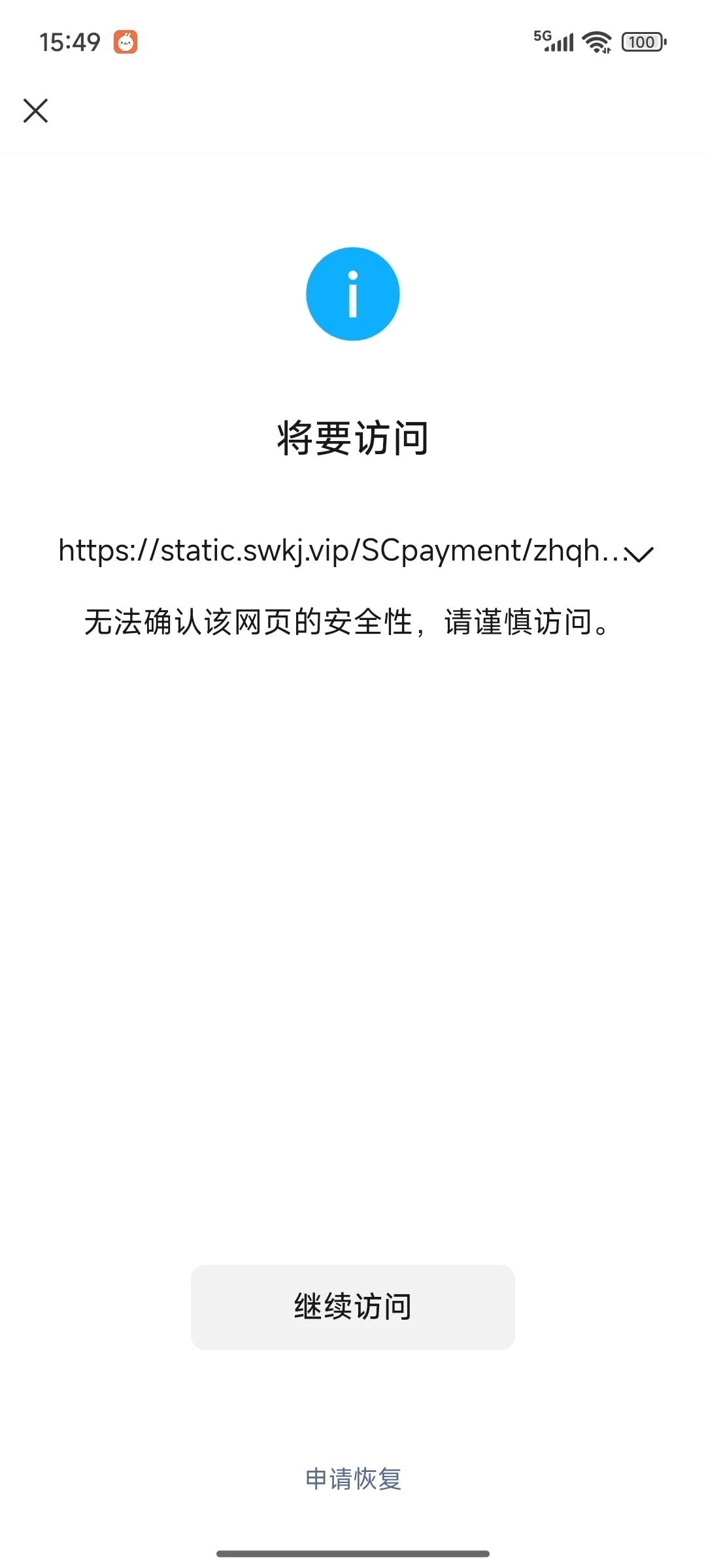 小程序开启了扫描普通二维码跳转到小程序的功能。 域名 static.swkj.vip。域名也已经备案过。 重点是这个域名之前已经申请过恢复了,审核等资料都提交了。而且你们也审核通过了。近期又提示这个问题,扫码不能直接进小程序。到底问题是出在哪里?麻烦你们能尽快处理一下。