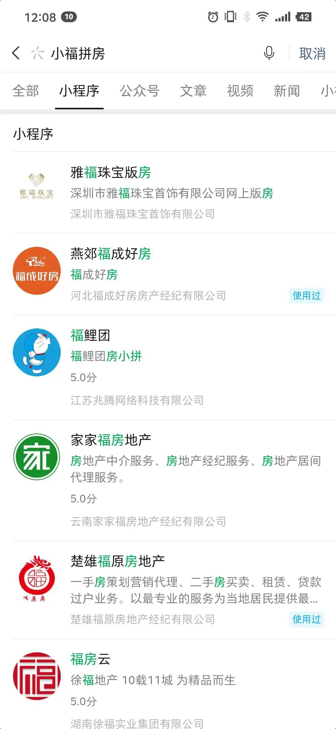 已经发布一周的时间了 依然在微信中搜索不到, 小程序名称 =》 小福拼房