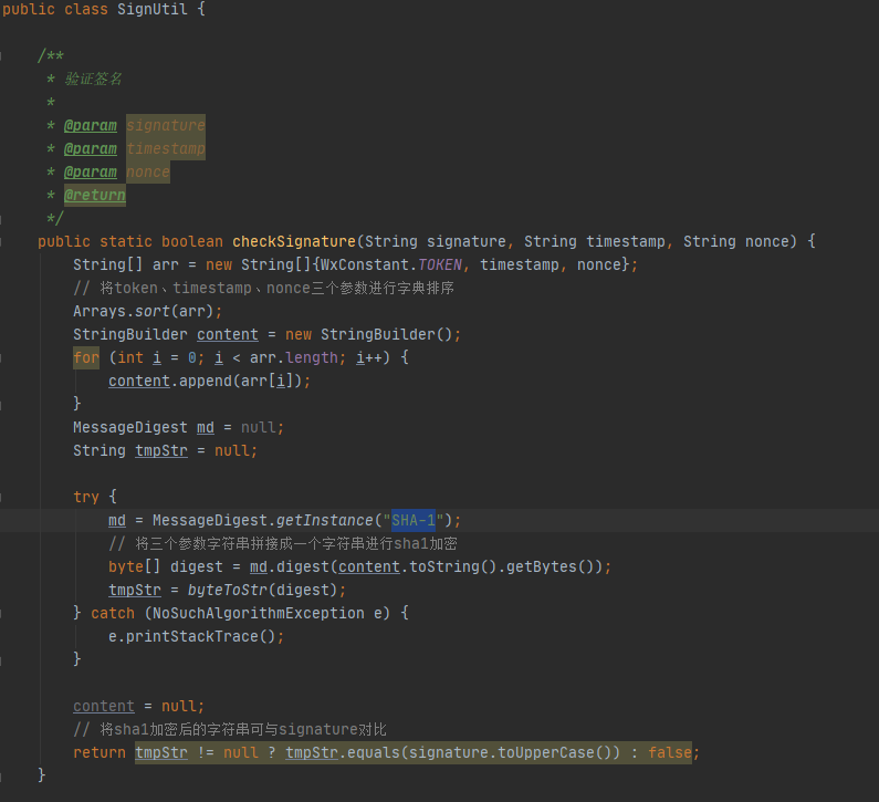 这就是为了验证签名,需要SHA-1进行加密,加密方法如下: