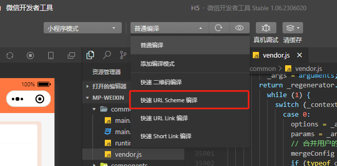 公众号内嵌H5页面,通过服务端获取URL Scheme ,前端传参 query: "id=232112",现在测试一直是跳转到正式版小程序,所以想在微信开发者工具模拟,怎么才能模拟并拿到入参?