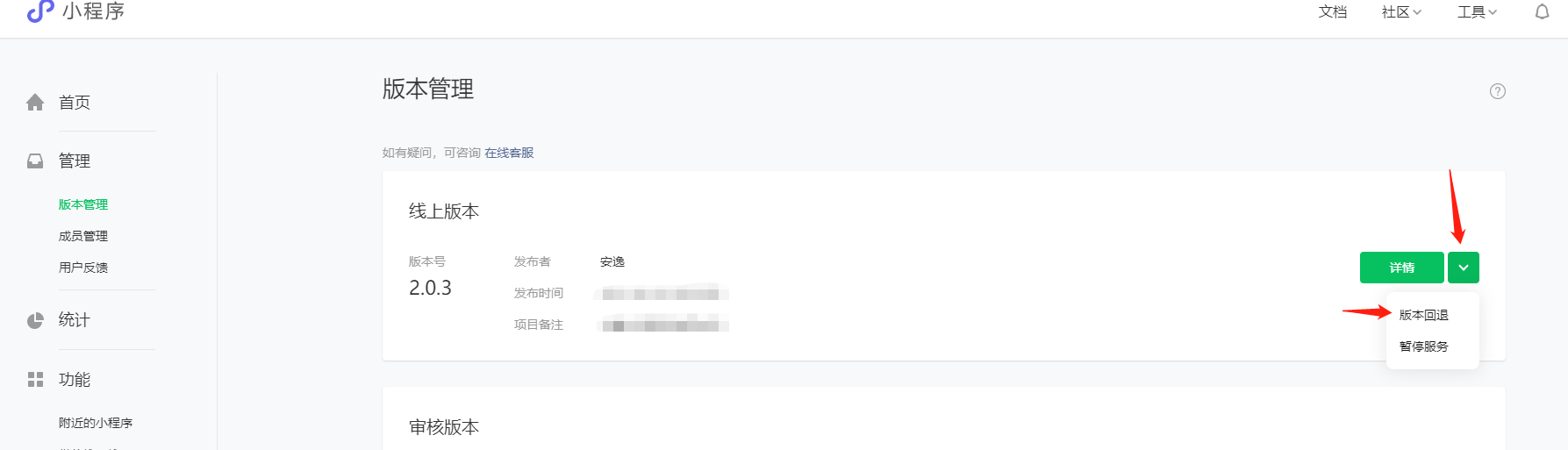 方法2:版本管理-线上版本-版本回退,可以查看历史更新记录