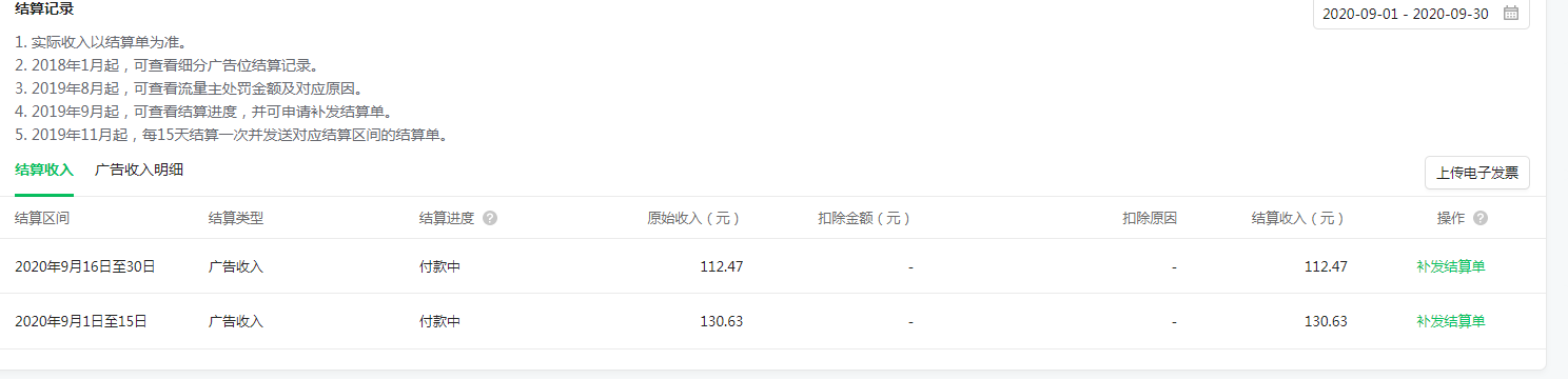 你好,目前2020.07月-2020.09月已支付成功,请核查银行账户到账情况。因贵司注册了流量主财务助手,后续开票申请结算时,待结算进度更新为“付款中”,请登录小程序“流量主服务助手”选择“企业财务账户”进行操作提现,提现之后3-5个工作日内留意下银行账户到账情况。具体操作指引建议参考推文介绍:https://mp.weixin.qq.com/s/VzwuTKt5w3q-NZh_Zbavpw