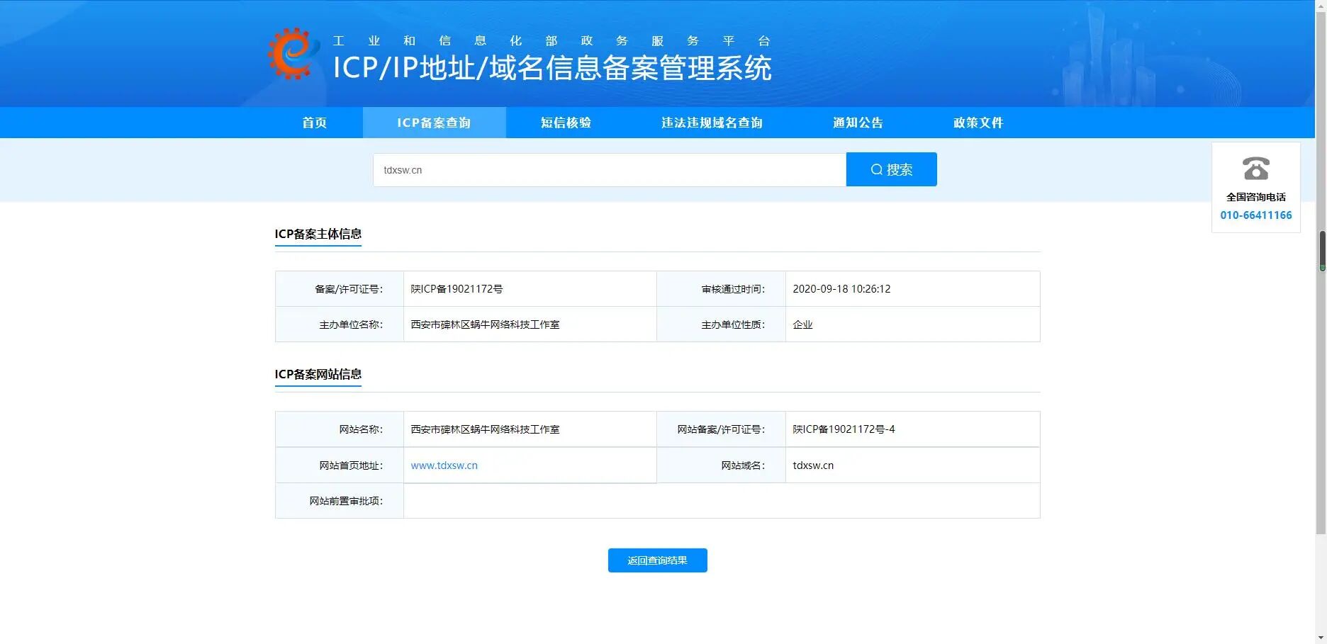 您好,域名是在2020-09-12 18:49:36在阿里云购买的,并且在2020-09-18完成了企业备案,随后发现本域名在腾讯所有应用中无法打开,并显示危险状态,经在安全联盟核实,此域名在2018年被他人使用搭建博彩网站所导致贵司查封,可是现在已经是新的域名持有者,正在进行正规合法的网站浏览,贵司对我司的业务造成了极大地不便,还请您核查后进行解封,谢谢tdxsw.cn域名解封本站的备案号陕ICP备19021172号-4