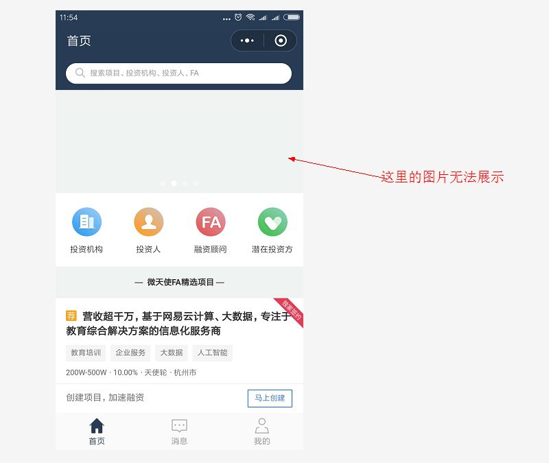 小程序名称=微天使乐投平台,在指定的安卓机上图片不展示,图片地址如下,能否查下原因