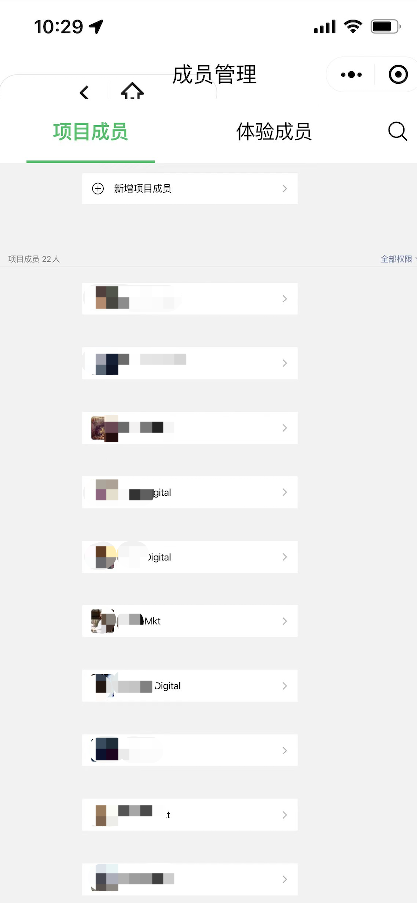 小程序助手,点击“成员管理” 1)点击左上角返回按钮,无反应 2)页面排版错乱 3)点击“新增项目成员”,无反应