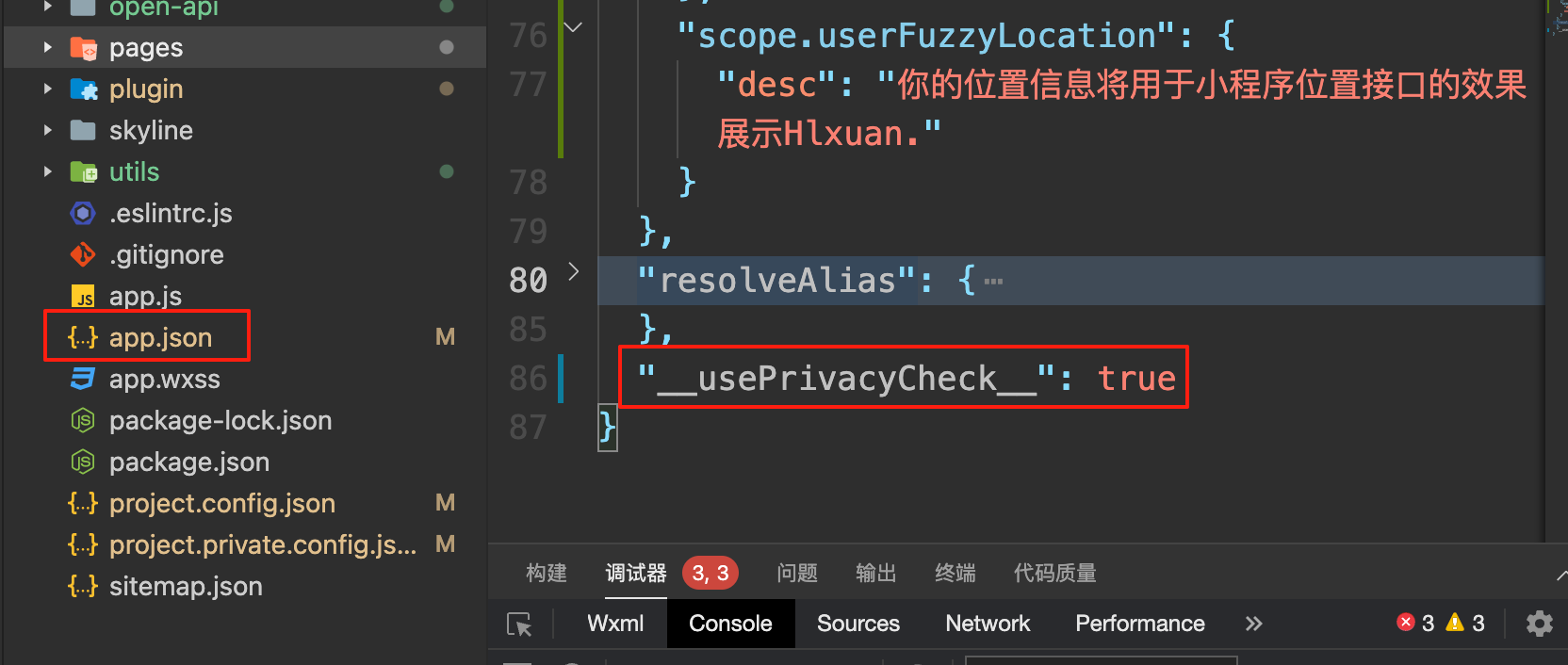 是不是在 app.json 文件配置了 "__usePrivacyCheck__": true ?