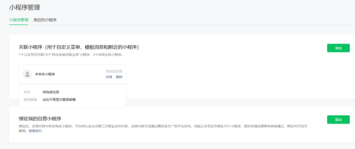 我登录微信小程序后(公众号管理后台),点击小程序,却又显示待完成注册。